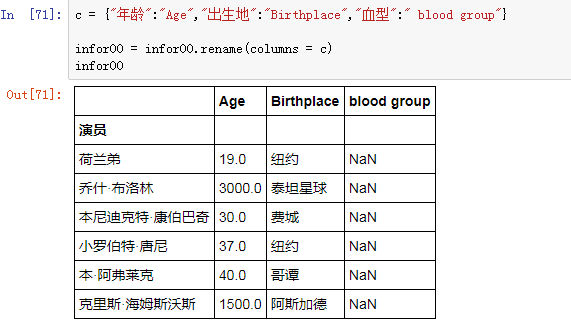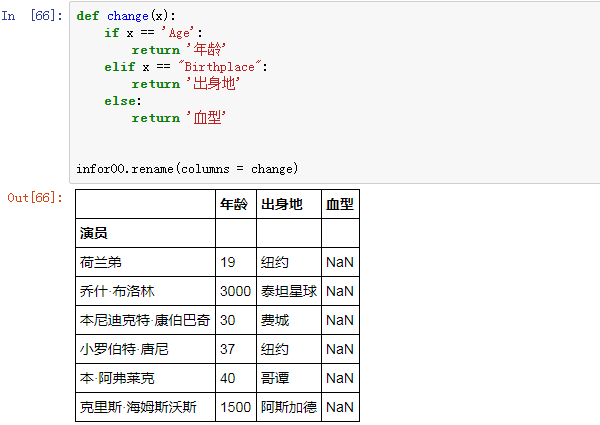 同样地,df.rename() 也可以通过字典映射的方法,修改DataFrame的列名:
