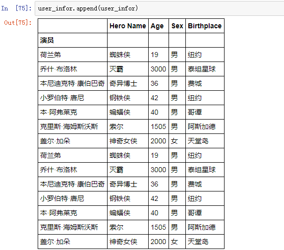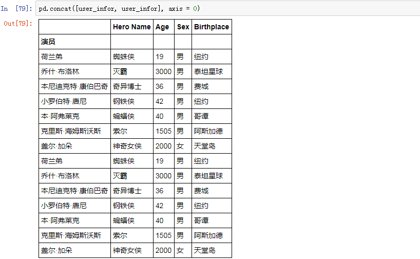 (2)df.append(df):只能按axis=0轴合并,相当于按行追加