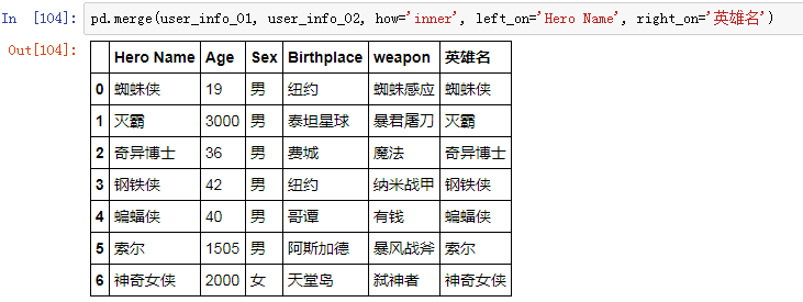 用法:pd.merge('left', 'right', how='inner', on=None, left_on=None, right_on=None, left_index=False, right_index=False, suffixes=('_x', '_y'))