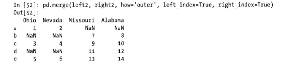 对于连接键位于索引中,可以使用 left_index = True 或 right_index = True (或者两者都传):