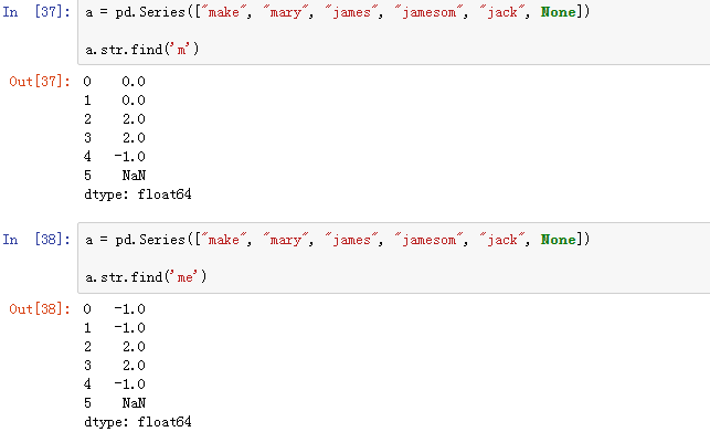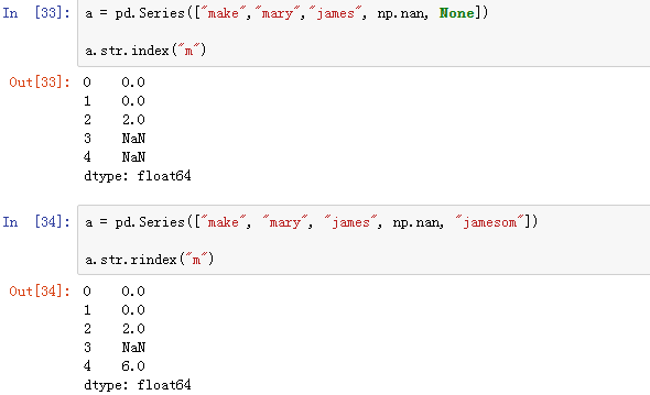 4、字符检索:.str.index(),.str.rindex(),.str.find()