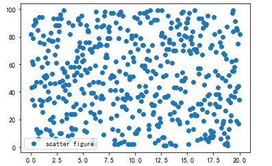 import matplotlib.pyplot as plt import numpy as np fig = plt.figure() ax = plt.axes() x = np.linspace(0.05,20,500) y = np.random.randint(1,100,500) ax.scatter(x,y,label="scatter figure") ax.legend() # plt.scatter(x,y,label="scatter figure") # plt.legend() plt.show()