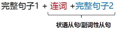 注:连词可能跟后面的句子构成从句,也可能跟前面的句子构成从句