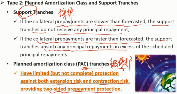 (2)Planned Amortization Class and Support Tranches:计划摊销层级(被保护)和保护层级