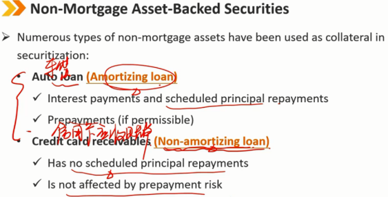 许多类型的非房产抵押贷款资产已被用作证券化的抵押品: