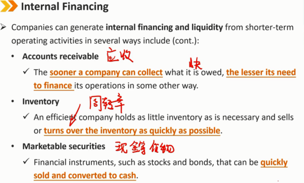 公司可以通过几种方式从短期经营活动中产生内部融资和流动性(续):