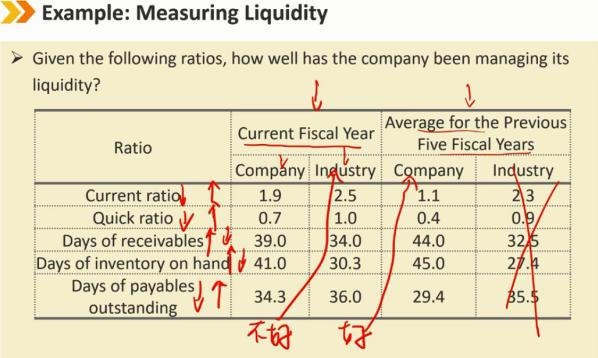 财务比率可以用来评估公司的流动性以及一段时间内的资产管理情况。