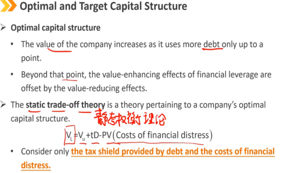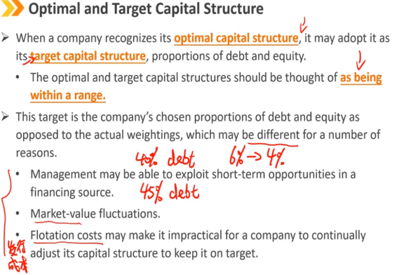 当公司确认其最优资本结构时,可以将其作为目标资本结构(债务和股权比例)