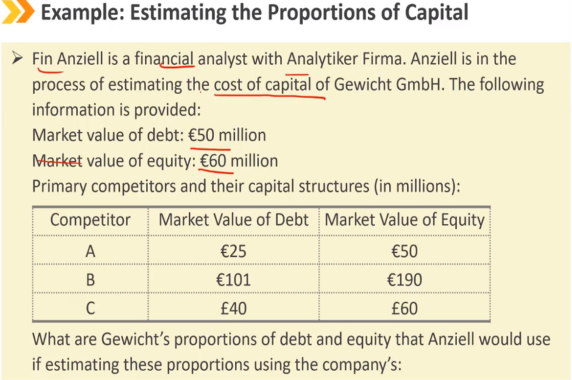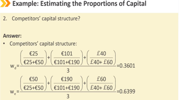 方法1:假设公司当前的资本结构(按组成部分的市值权重)代表公司的目标资本结构。