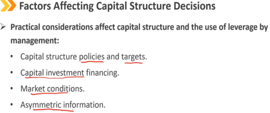 4、Factors Affecting Capital Structure Decisions:影响企业资本结构决定的因素