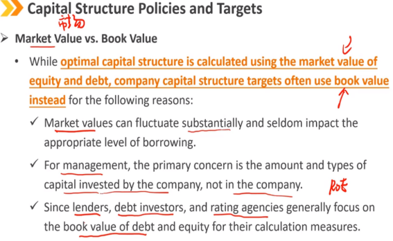 虽然最优资本结构是使用股权和债务的市场价值计算的,但公司资本结构目标通常使用账面价值,原因如下: