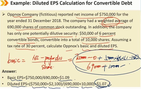 当一家公司有未偿还的可转换债务时,稀释每股收益的计算也使用"如果转换法"。(如果可转换债务在期初转换,每股收益是多少。)