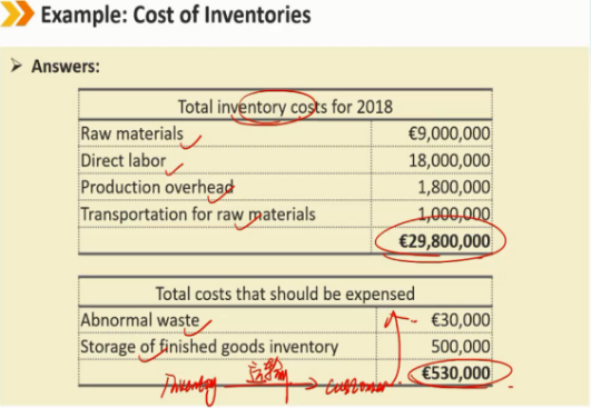 例如:生产木材家具产生的一些边角料可以算作存货成本,但是如果因为管理不当,仓库漏水把木材都泡了导致的损失,只能算作异常浪费而产生的费用。