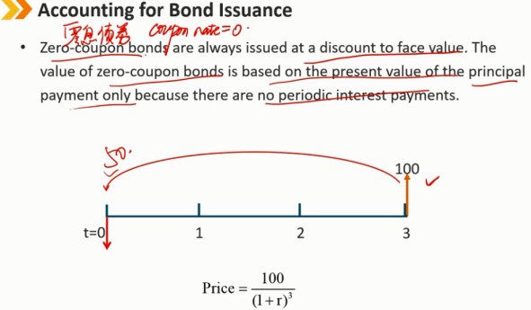零息债券的发行价格总是低于面值。零息债券的价值仅基于本金支付的现值,因为没有定期利息支付