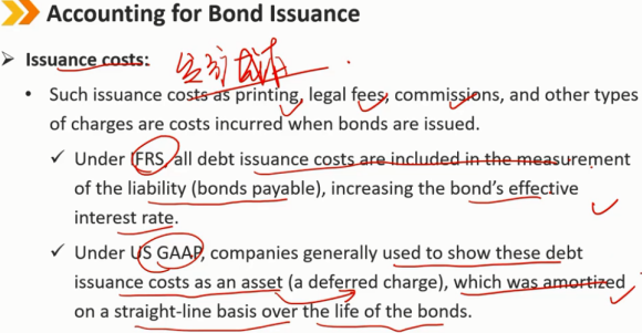 根据国际会计准则,所有债务发行成本都包含在负债(应付债券)的计量中,从而提高了债券的实际利率,融资成本变高。