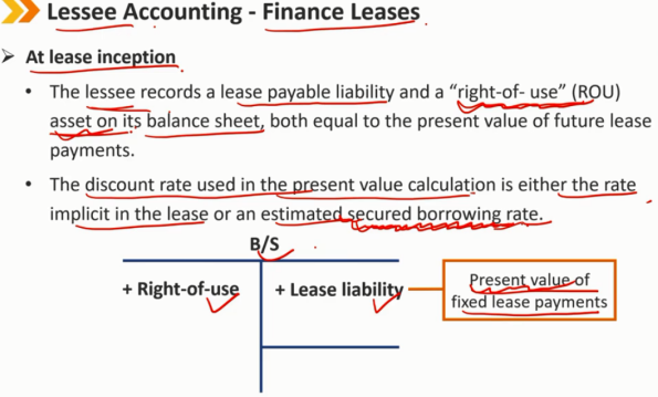 承租人在其资产负债表上记录租赁应付负债和使用权(ROU)资产,两者均等于未来租赁付款的现值。