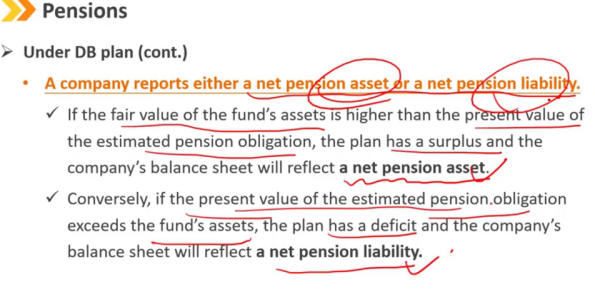 相反,如果预计养老金义务的现值超过基金的资产,则该计划存在赤字,公司的资产负债表将反映净养老金负债。