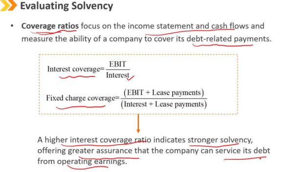覆盖比率侧重于利润表和现金流量表,衡量公司偿付债务相关款项的能力。