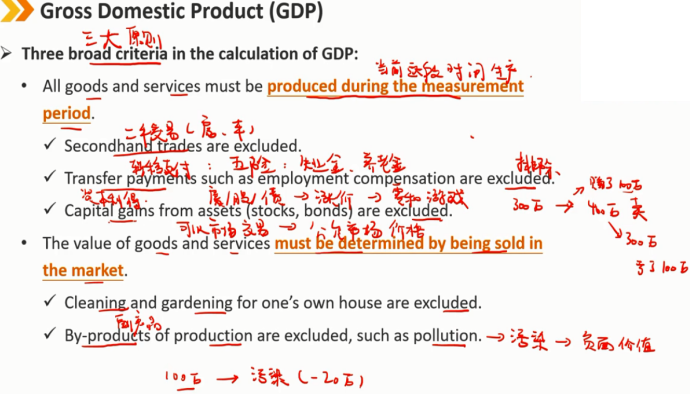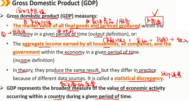 在给定时间段的经济体内所有家庭、公司和政府赚取的总收入。(收入法定义)