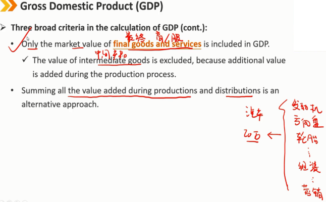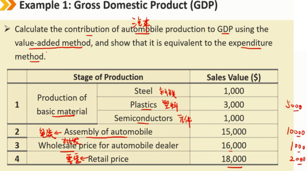 中间产品的价值不包括在内,因为在生产过程中增加了附加价值