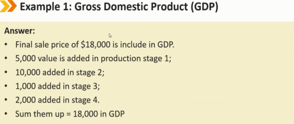 在给定时间段的经济体内生产的所有最终产品和服务的市场价值(产出法定义,更常见),或:
