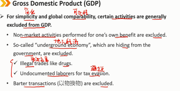 为了简化和全球可比性,某些活动通常被排除在GDP之外。