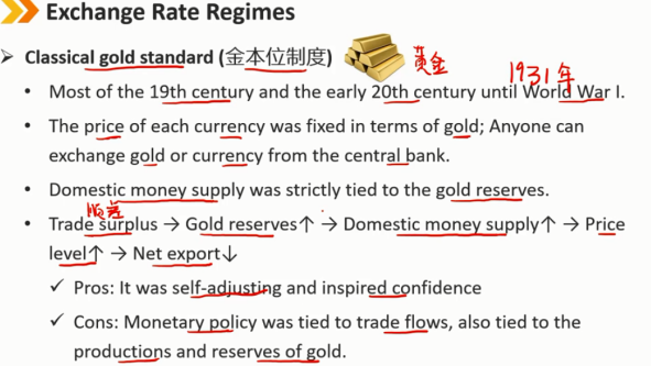 缺点:货币政策与贸易流有关(逆差时货币政策无效了),也与黄金的产量和储备有关。