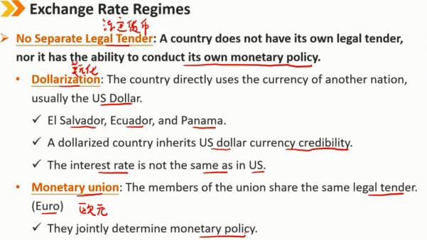 美元化:该国直接使用另一个国家的货币,通常是美元。