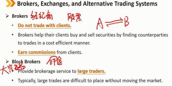 1、Brokers, exchanges, and alternative trading systems:经纪商,交易所和另类交易系统