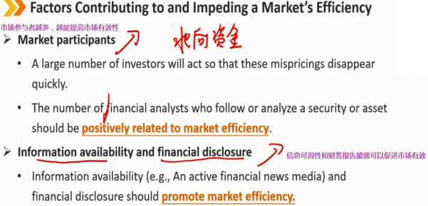 3、Factors Contributing to and Impeding a Market's Efficiency:影响和阻止市场有效的因素