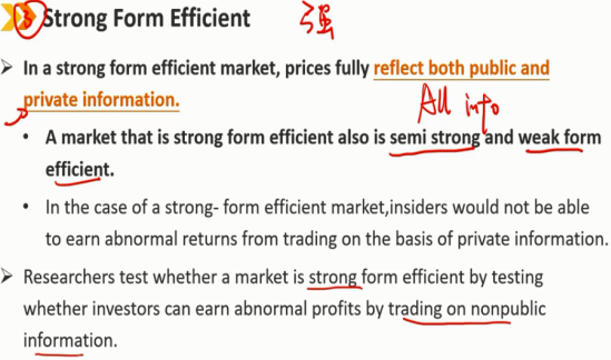在一个强式有效的市场中,内幕人士将无法从基于非公开信息的交易中获得超额收益。