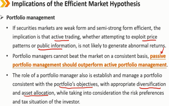 投资组合经理无法在一致的基础上击败市场,被动投资组合管理应优于主动投资组合管理。