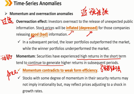 (2)Momentum and overreaction anomalies:动能和过度反应异象