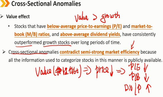 横截面异象与半强式市场相矛盾,因为以这种方式对股票进行分类的所有信息都是公开的。