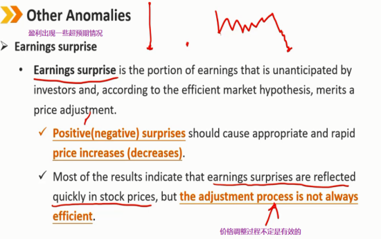 收益惊喜是指投资者未预料到的收益部分,根据有效市场假说,应进行价格调整。