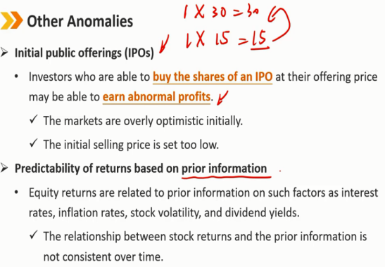 A market anomaly occurs if change in the price of an asset or security cannot directly be linked to current relevant information known in the market or to the release of new information into the market.