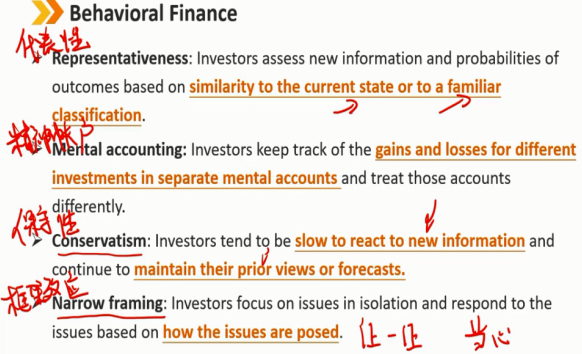 保守性偏差:投资者往往对新信息反应缓慢,并继续保持其先前的观点或预测。