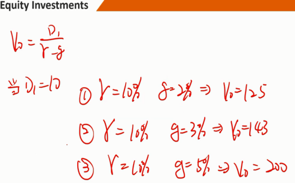 r 和 g 之间的差值越大,股票价值越小