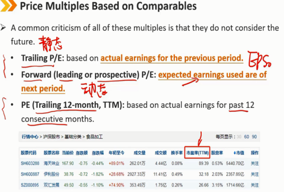 动态(领先或预期)市盈率:使用的预期收益为下一期。