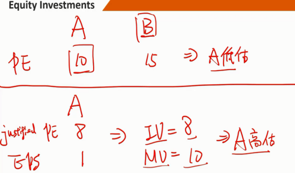 周期性企业的价格乘数可能受到当前经济状况的高度影响,周期处在发展好的时候,由于加杠杆,EPS增长较大,显得P/E低,但其实此时股价并不便宜,周期处在发展不好的时候,EPS较低,P/E显得高,但是此时股价可能很低迷,如果出现转折,将会大幅增长
