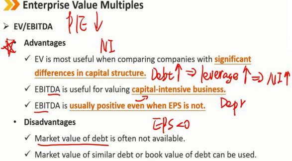 在比较资本结构存在显著差异的公司时,EV最为有用