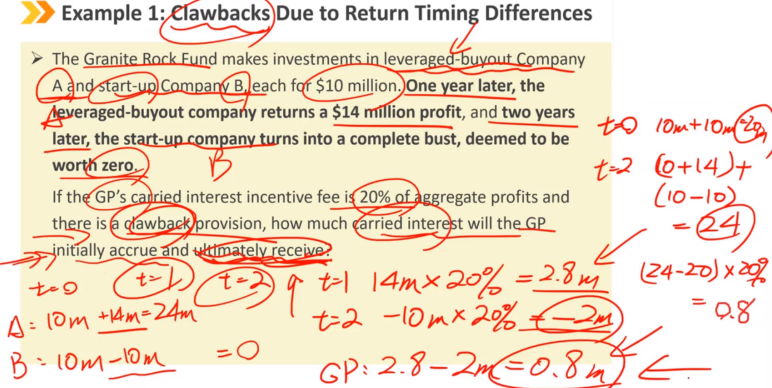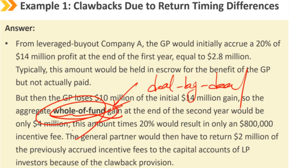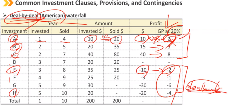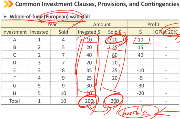 注:与PE完全不同,对GP很有利,不用管是否收到了全部初始投资,也不用管hurdle rate之类的,没有回拨条款的话也不用在后面亏损的时候退回之前的收益。