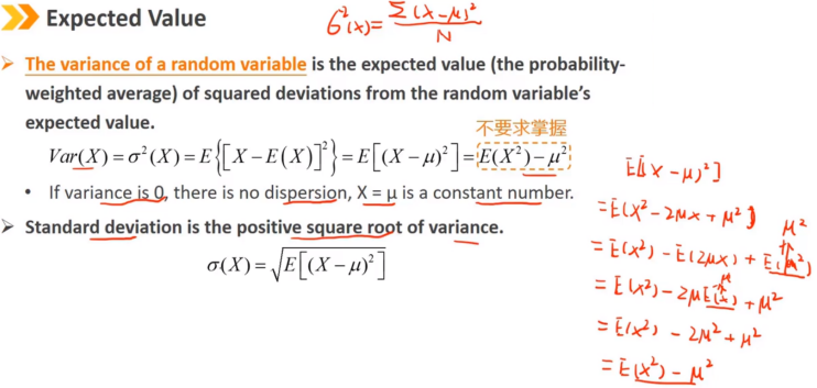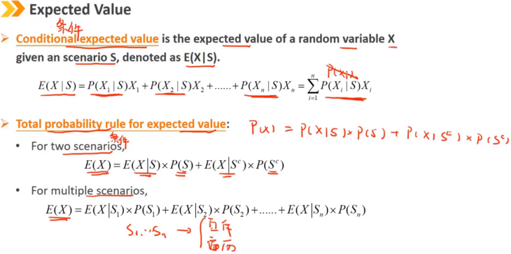 expected value、conditional expected value、total probability rule for expected value、the variance of a random variable