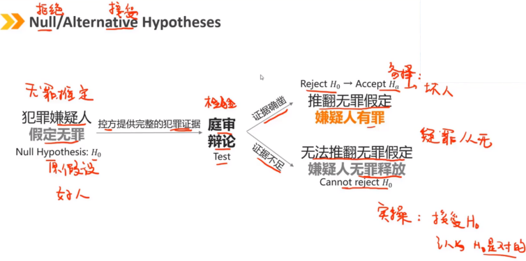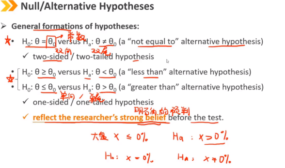 2、Null / Alternative Hypotheses:原假设和备择假设