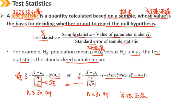 检验统计量是基于样本计算的数量,其值是决定是否拒绝原假设的基础。