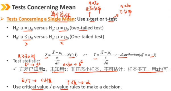 Ⅱ、Tests Concerning Mean:关于均值的检验