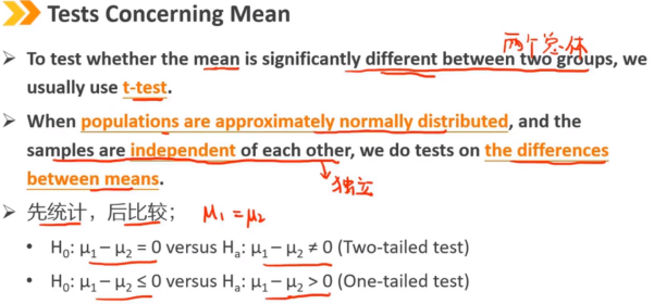 当总体近似满足正态分布,且样本彼此独立时,我们对均值之间的差进行检验。