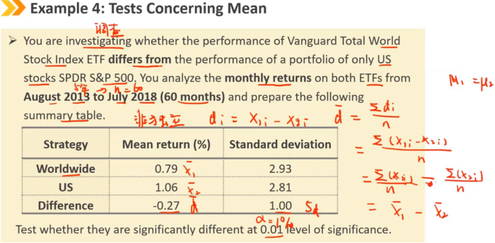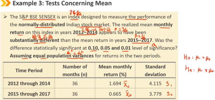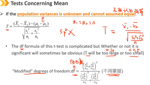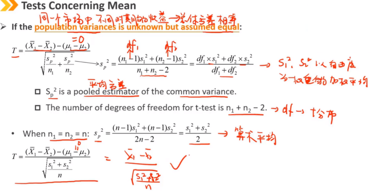 如果两个总体的方差未知,假设它们相等的情况(例如来自同一个市场,不同时期的收益)