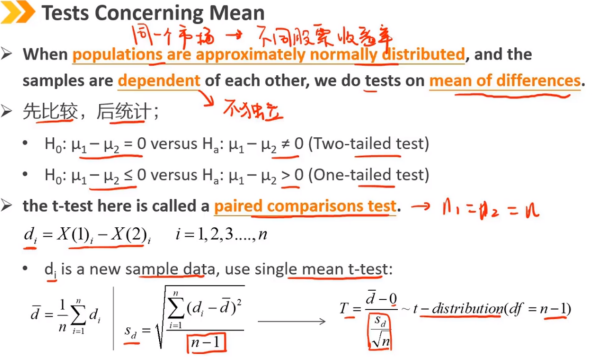 先比较,后统计,d是新样本数据,使用单个均值的t检验