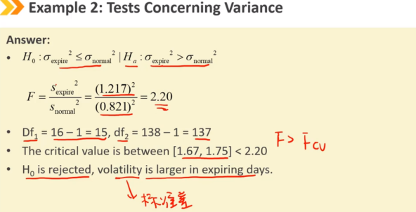关于两个总体的方差检验,假设总体都满足正态分布,使用F检验